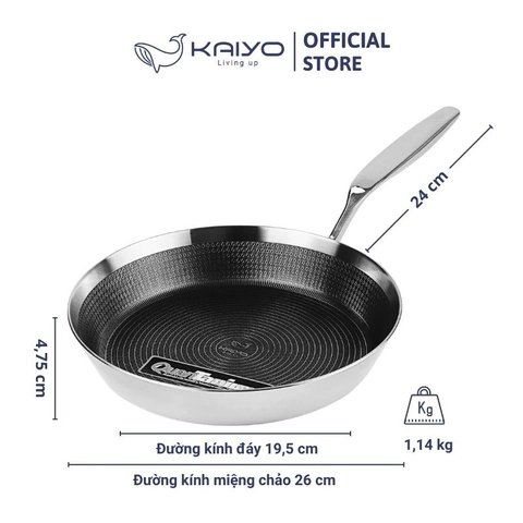 - Lớp ngoài cùng tiếp xúc với mặt bếp là inox 430 nguyên tấm cho hiệu suất bắt từ cao nhất. Nồi chảo inox Tri-Ply Kaiyo dùng trên mọi loại bếp kể cả các bếp từ khó tính, bếp điện, bếp hồng ngoại, bếp gas,….