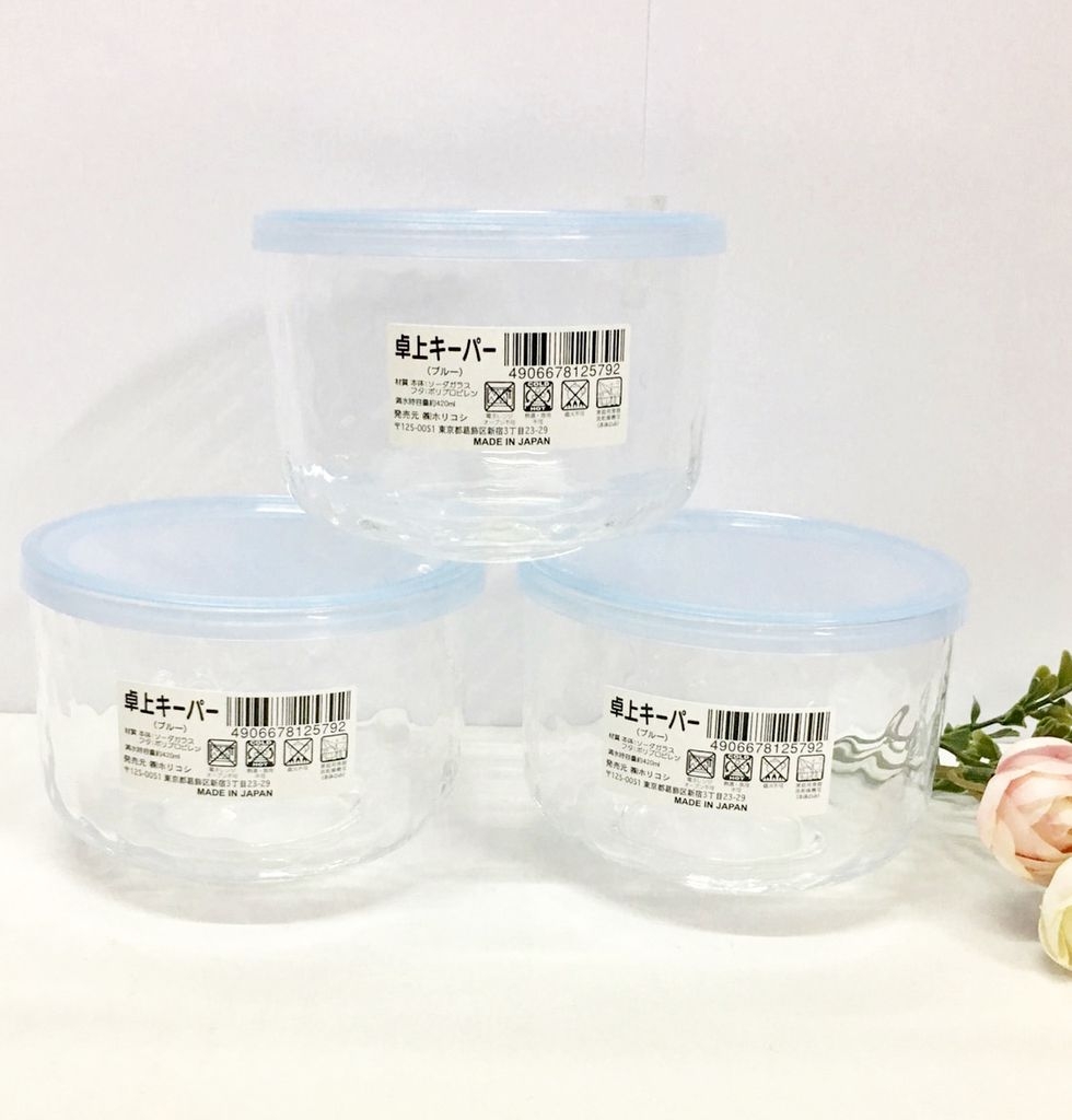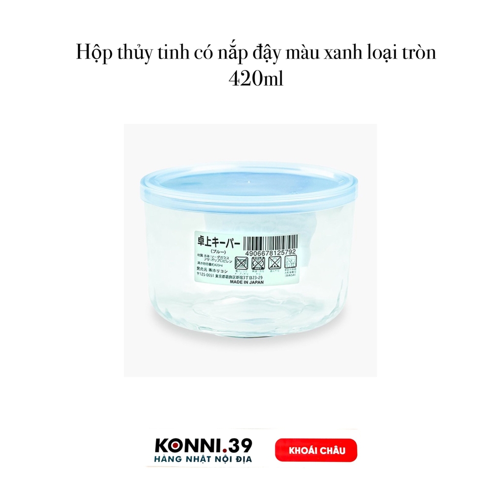 Hộp thủy tinh có nắp đậy màu xanh loại tròn 420ml