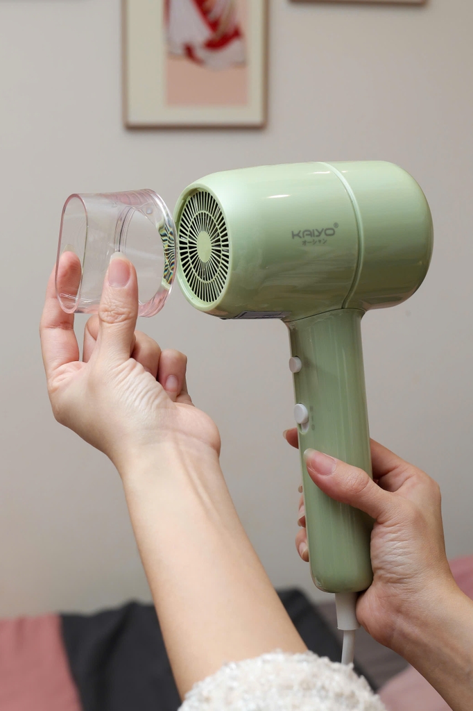 𝐌𝐚́𝐲 𝐬𝐚̂́𝐲 𝐭𝐨́𝐜 𝐢𝐨𝐧 𝐚̂𝐦 𝐡𝐚𝐢 𝐜𝐡𝐢𝐞̂̀𝐮 𝐧𝐨́𝐧𝐠 𝐥𝐚̣𝐧𝐡 𝐊𝐚𝐢𝐲𝐨 𝐊𝐇𝐃-𝟒𝟏𝟖 là dòng máy sấy tóc gia đình có công suất 1600W, nổi bật với công nghệ bổ sung ion âm giúp bảo vệ tóc, giảm khô xơ và tĩnh điện.
