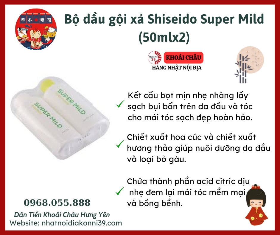Set 2 dầu gội, xả mini Shiseido Super Mild được sản xuất theo công nghệ tiên tiến nhất, chiết xuất từ cỏ Nhật Bản với tinh chất thảo dược thiên nhiên (96%) làm đẹp tóc, dưỡng ẩm cho tóc, làm tóc khỏe, suôn mượt từ gốc tới ngọn