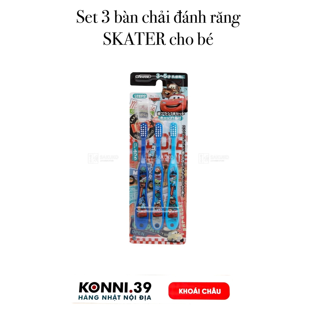 Bàn chải đánh răng Skater set 3 chiếc cho bé từ 3-5 tuổi