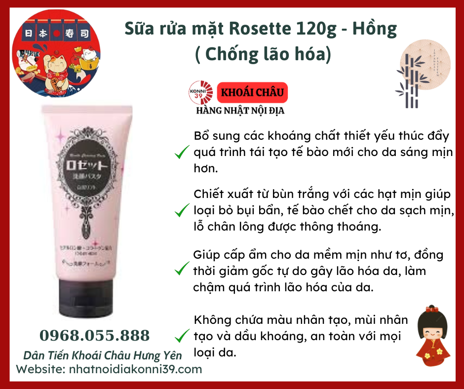 - Là dòng sữa rửa mặt có các thành phần tự nhiên chứa nhiều vitamin và dưỡng chất tốt cho da, Sữa Rửa Mặt ROSETTE bao gồm nhiều loại sữa rửa mặt khác nhau sẽ không chỉ giúp làm sạch được bụi bẩn và tẩy được tế bào da chết mà còn cung cấp thêm dưỡng chất giúp hỗ trợ tái tạo, chăm sóc và giúp dưỡng ẩm, ngăn ngừa lão hóa da hiệu quả.