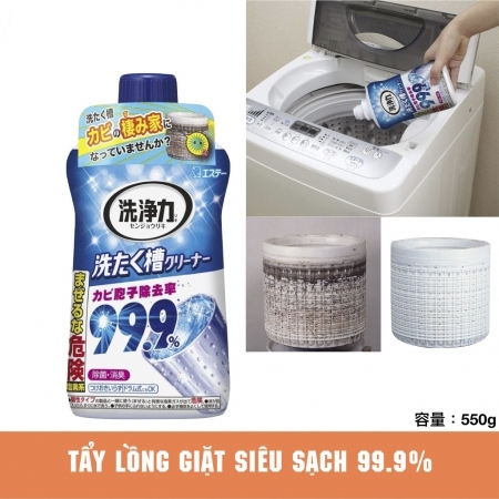 - Hướng dẫn sử dụng: Cho máy khởi động chế độ giặt thường, cho dung dịch vào, rồi cho nước đầy vào lồng, để máy giặt bình thường, rồi xả nước. Nếu lần đầu tiên tẩy rửa lồng máy, nên để ngâm 3 tiếng rồi xả, để đạt hiệu quả cao. Không ngâm quá 12 tiếng. Sau khi tẩy rửa, nếu cảm thấy lồng máy chưa sạch, có thể sử dụng tẩy rửa thêm 1 lần nữa.